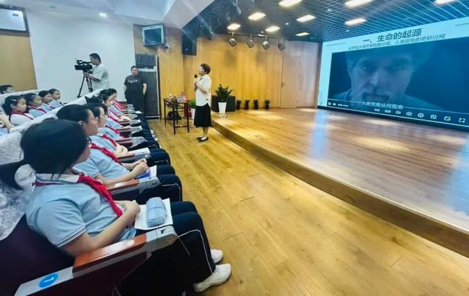 毛健老师没有照本宣科,一开场就用一段《生命的起源》视频,带领孩子们穿越时空,感受从细胞到人类诞生的奇迹。毛健声音温和而有力量地说:‘我们每个人的出生,就是战胜了无数偶然的奇迹,每个生命的诞生,本身就是最伟大的胜利。’