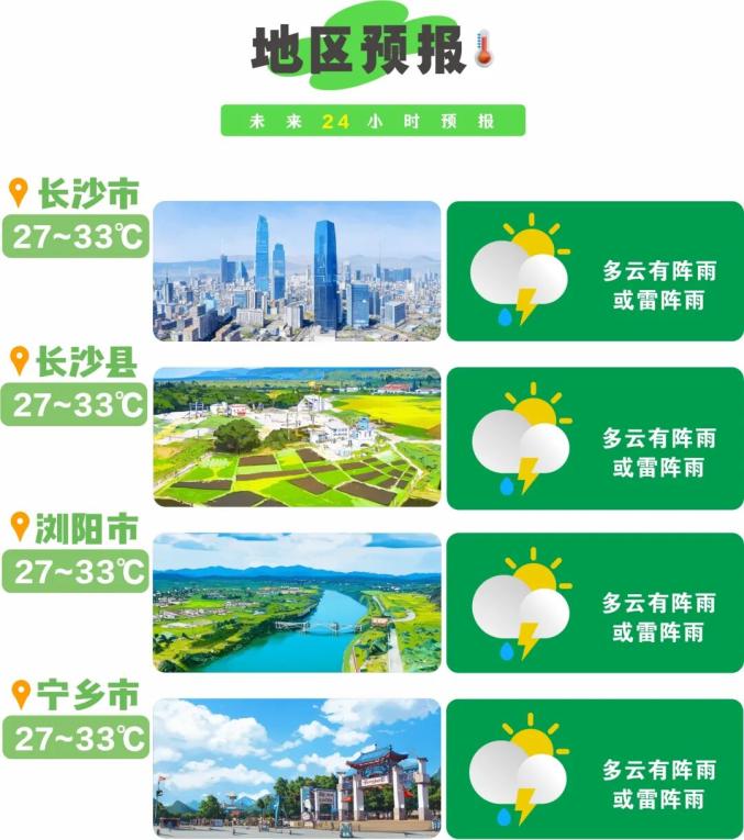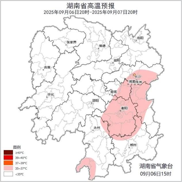 具体来说,9月6日晚上至7日白天,湘北多云,其他地区多云有小到中阵雨或雷阵雨,其中湘西南局地大到暴雨;北风2~3级,雷雨时阵风7~9级;最高气温湘中、湘南33~36℃,其他地区30~32℃,最低气温22~26℃。