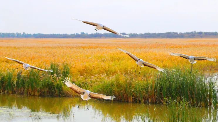 当秋风拂过黑土地,候鸟带着秋意开启南迁之旅,吉林成为观鸟的绝佳之地。在敬信湿地龙山湖内,晨雾未散时,成千上万的候鸟结伴翱翔;莫莫格保护区里,东方白鹤集群啄食;向海保护区中,丹顶鹤踏露起舞,每一幕都充满了自然的生机。