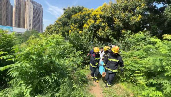 指挥中心马上调派掇刀区军马场消防救援站前往现场处理。10多分钟后,消防救援人员到达了现场。这时,120医护人员已经对老人进行了初步急救。老人虽然恢复了意识,但身体非常虚弱,根本没办法自己走路。而且现场环境十分复杂,有一条崎岖不平的土路,周围杂草丛生,还得翻越一段陡坡,才能到达150米外停放救护车的地方。