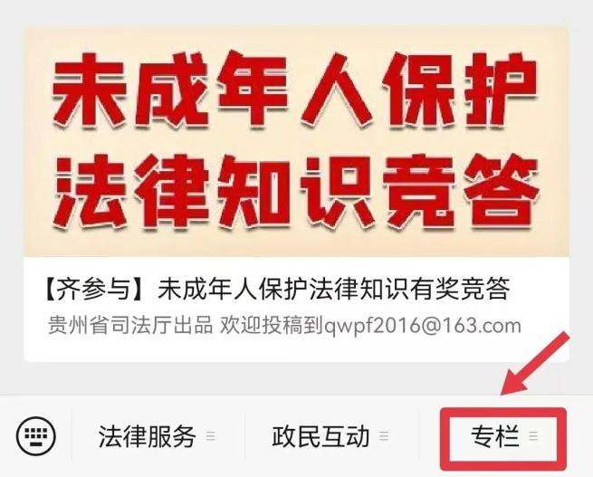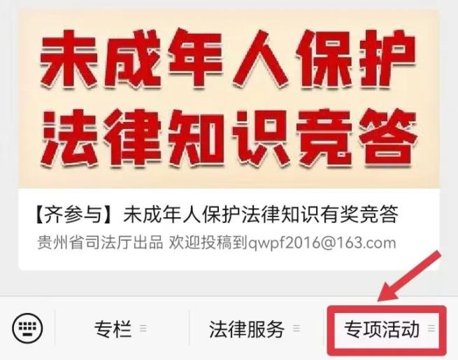 若关注“贵州司法”微信公众号,点击下方菜单栏“专栏”---“竞答活动”。