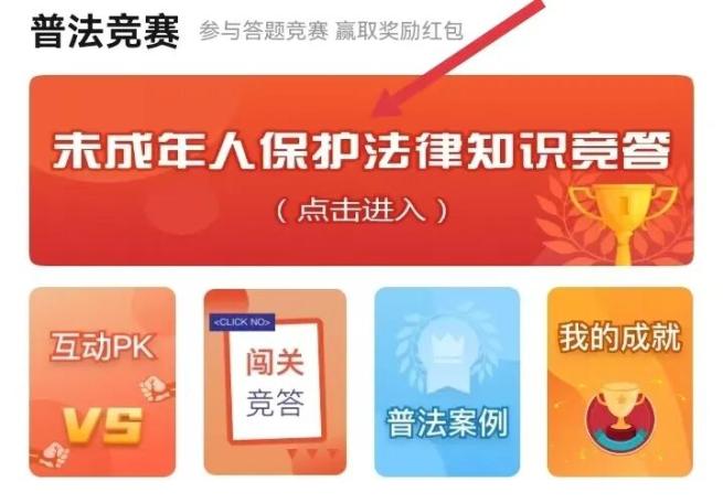 3. 进入竞答活动页面后,点击“未成年人保护法律知识竞答”。