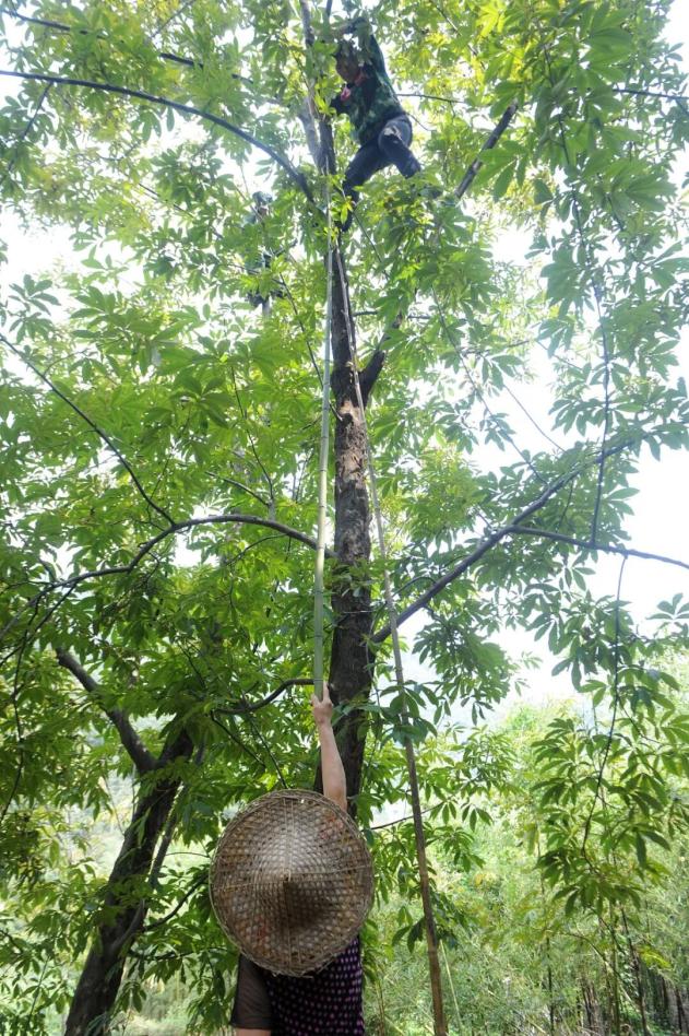 山核桃开杆后,许多公司单位职员会请假,请假条上写着“回家打山核桃”。