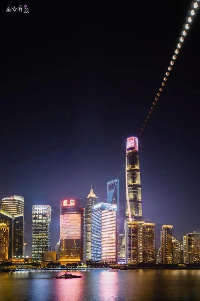 2022年11月8日,在上海外滩拍摄的月全食“项链”(拼版)。(王艺胤 摄)