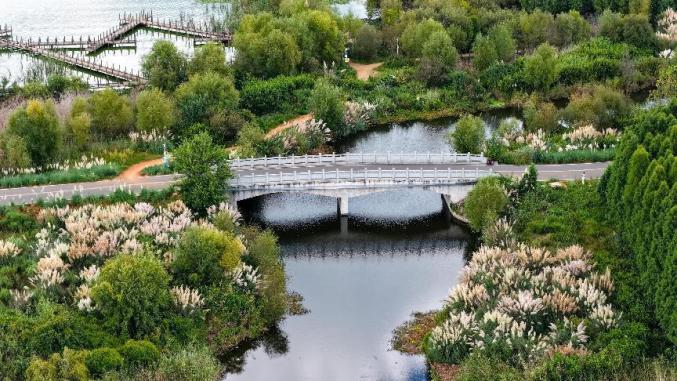 今日正值白露,夜凉昼暖。在云南晋宁南滇池国家湿地公园,芦苇已抢先披上了一层朦胧银纱。