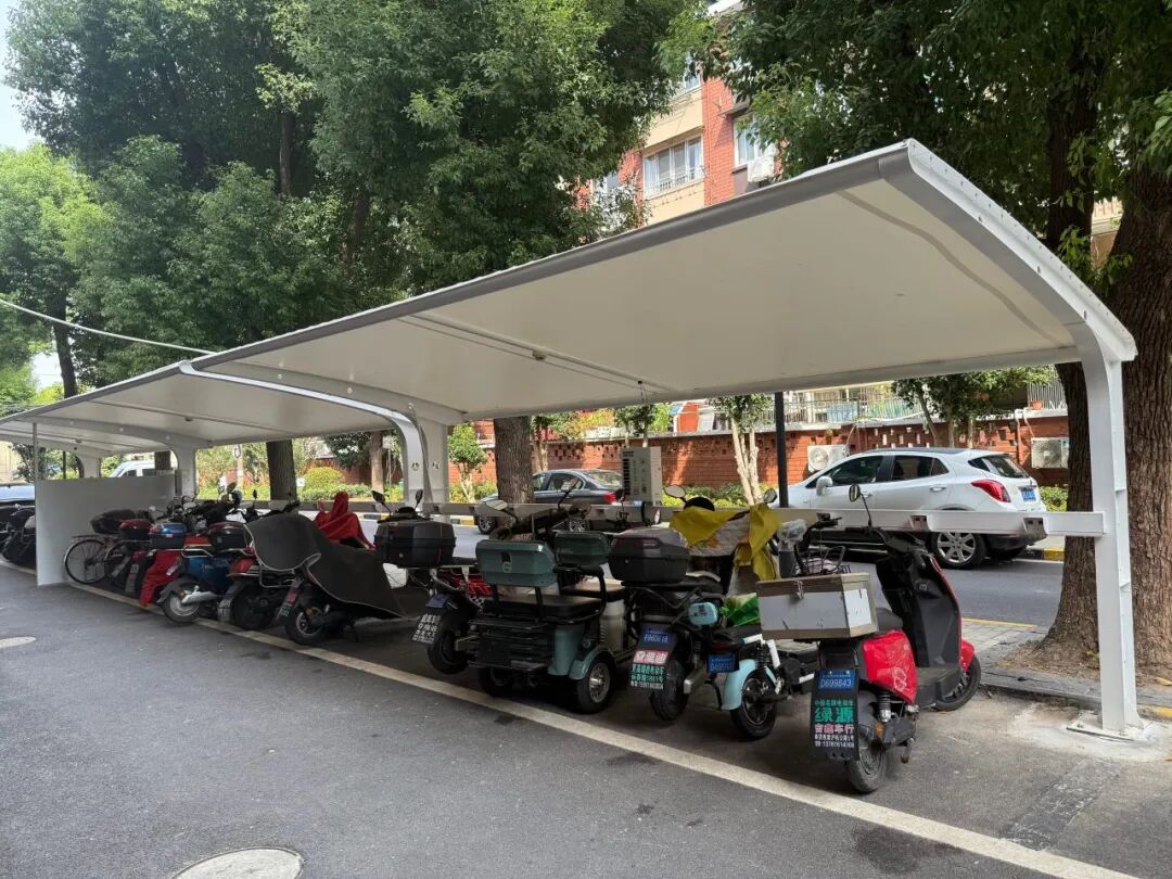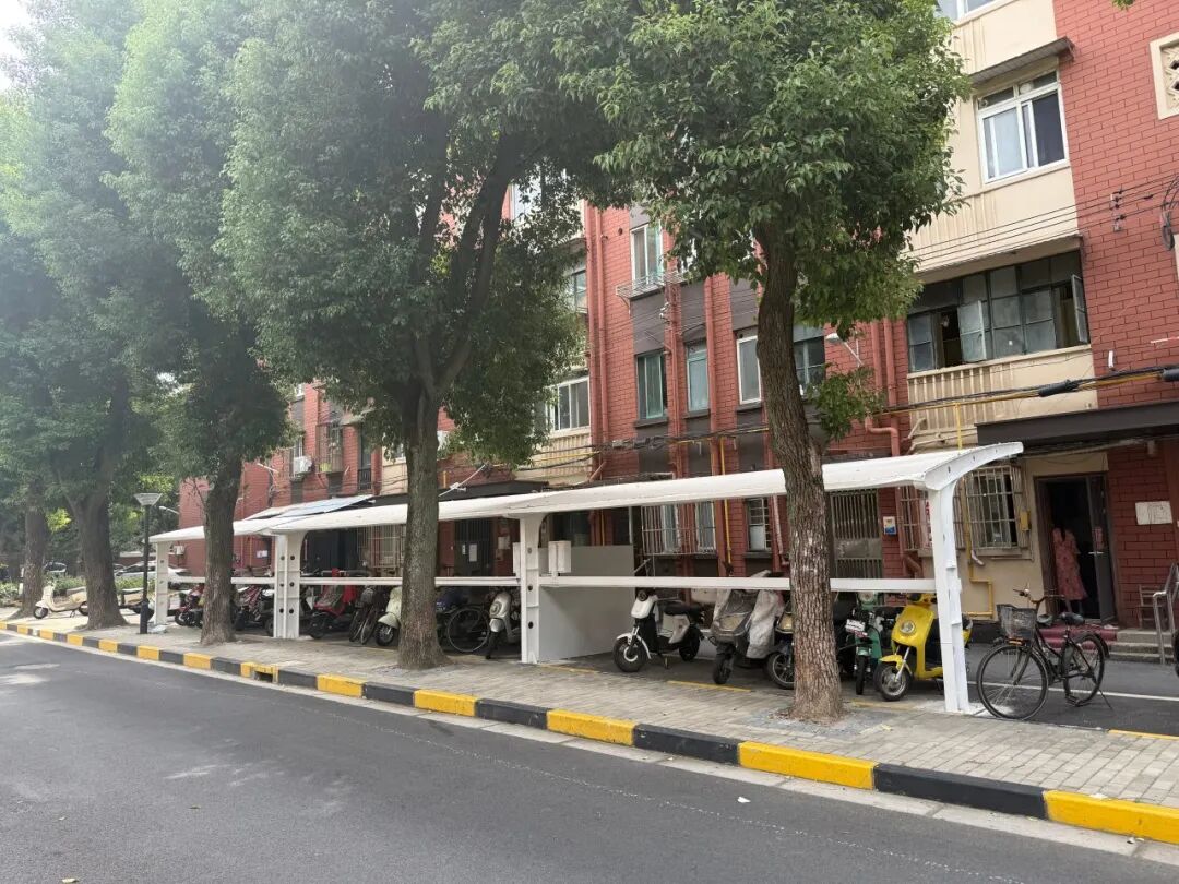 在党总支统筹下,业委会、物业迅速推进施工,居民代表全程参与监督。短短时间内,17个标准化充电棚顺利建成,既满足了充电需求,又消除了安全隐患,社区环境焕然一新。更重要的是,从美丽家园建设建车棚,到“红色议事厅”牵头新增充电车棚,居民从“旁观者”变身“参与者”,社区治理活力显著提升。