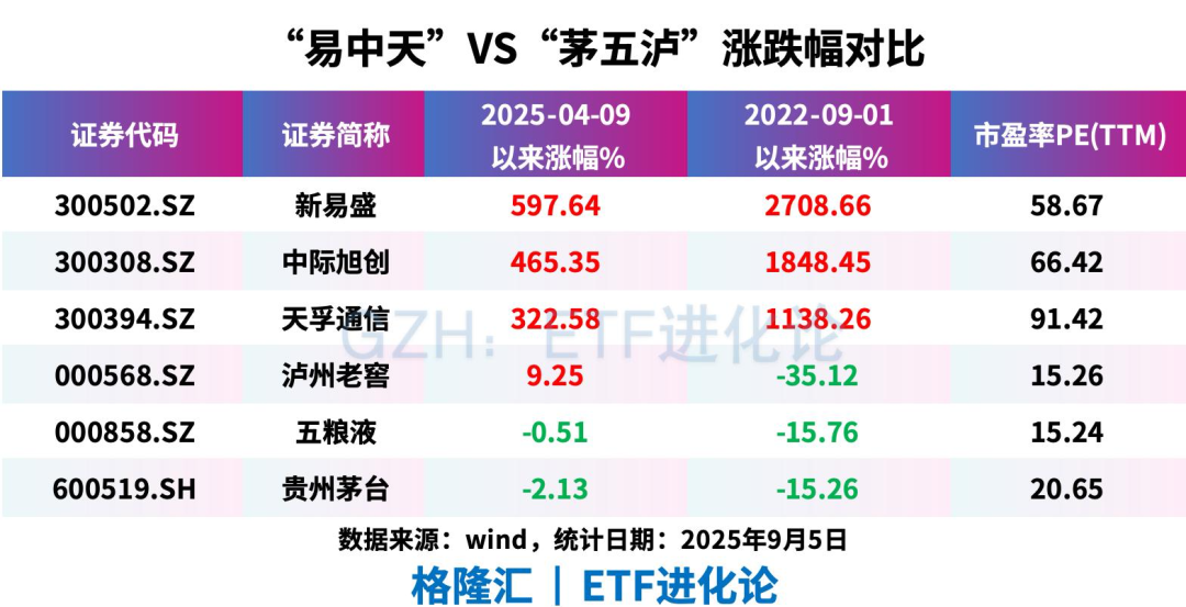 光模块相关股票的股价可谓是一路飙升。新易盛自4月8日以来涨幅高达597%,近三年股价翻了27倍;中际旭创4月8日以来涨465%,近三年股价翻了18倍;天孚通信4月8日以来涨322%,近三年股价翻了11倍。与之形成鲜明对比的是,白酒板块在这三年成为了最惨的板块,“茅五泸”近三年平均跌22%。