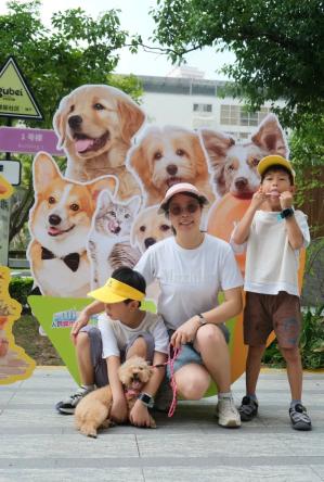 在公寓的大广场上,一场萌趣的萌宠时装秀将活动推向高潮。大家精心为宠物装扮,带着它们与“文明养宠”拍照框合影。