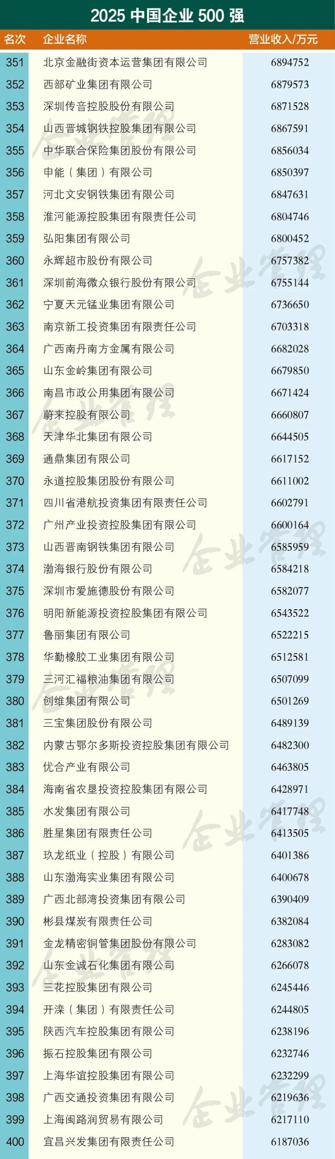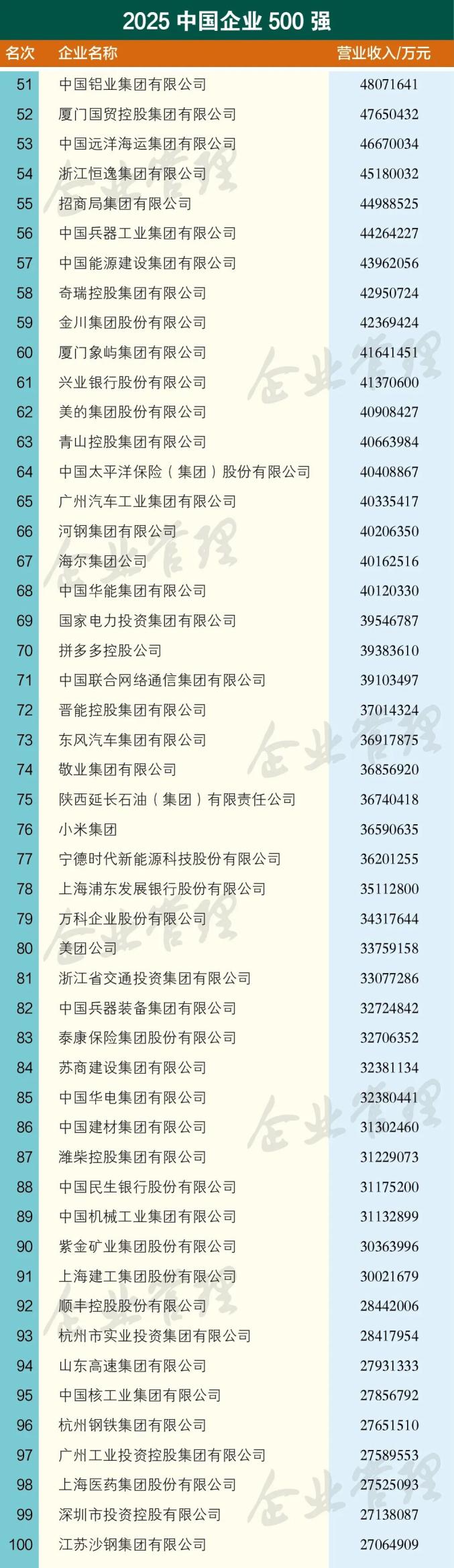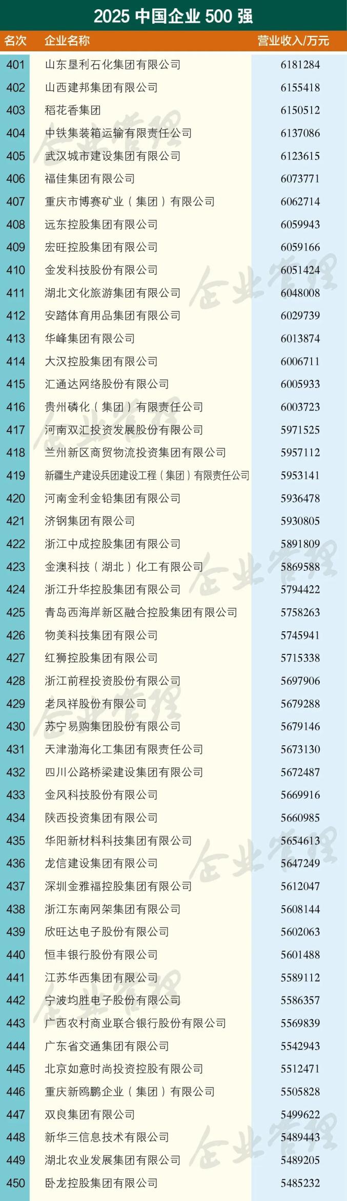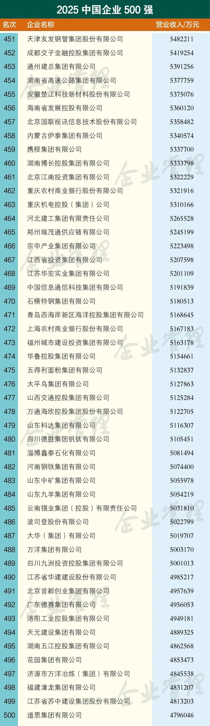 9月15日,中国企业联合会、中国企业家协会公布了“2025中国企业500强”榜单。该榜单以2024年企业营业收入作为入围标准,入围门槛比上一年提高了5.79亿元,达到479.6亿元。