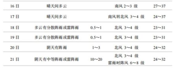 望城未来一周天气预报显示,天气前晴后雨。16至17日为多云,晴天间多云;18至19日,受冷空气影响,多云有分散阵雨或雷阵雨;20至21日,受东风扰动影响,阴天有中等阵雨或雷阵雨,局地有短时强降水(30 - 50毫米/小时)、雷暴大风(6 - 8级)等强对流天气。