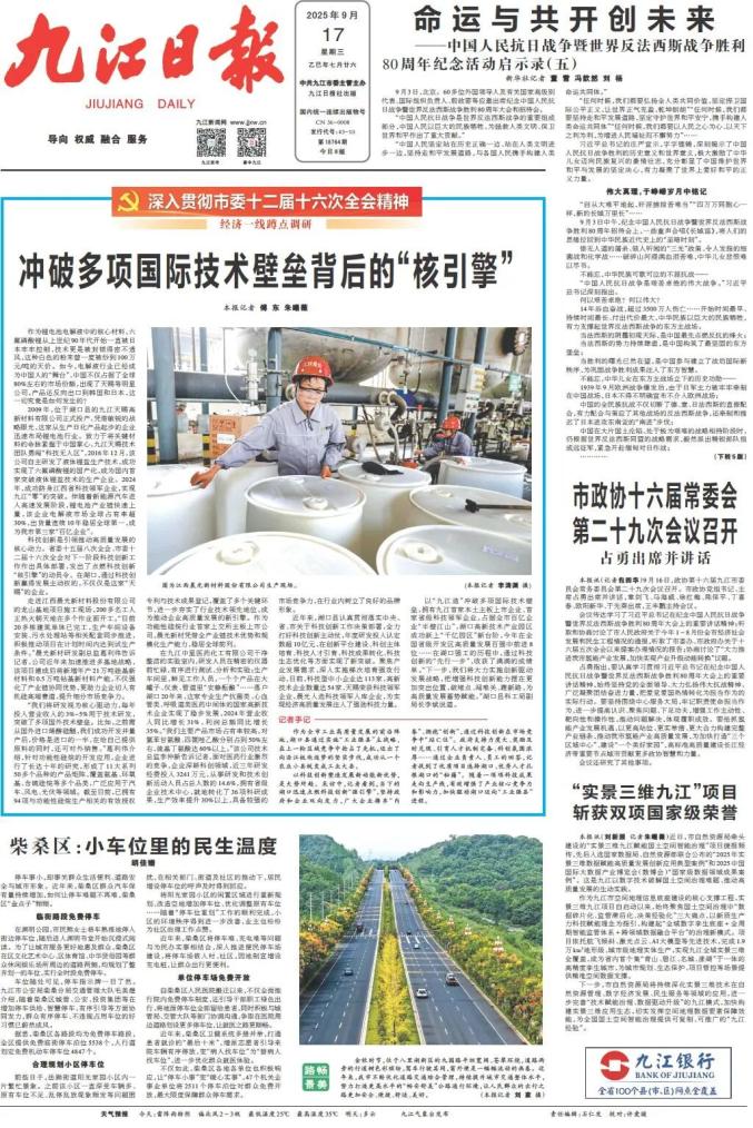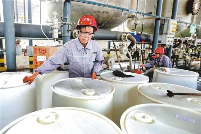 2009年,位于湖口县的九江天赐高新材料有限公司投产。这家从日化产品起步的企业凭借敏锐战略眼光,迅速布局锂电池行业。九江天赐技术团队为将关键材料掌握在中国手中,勇探“科技无人区”。2016年12月,自主研发液体锂盐生产技术,实现六氟磷酸锂国产化,成为国内首家突破该技术的企业。2024年,跻身江西省科技领军企业,实现九江“零”的突破。随着新能源汽车发展,锂电池产业链规模扩大,该企业电解液全球市场占有率超30%,出货量连续10年全球第一,成为九江第三家“百亿企业”。