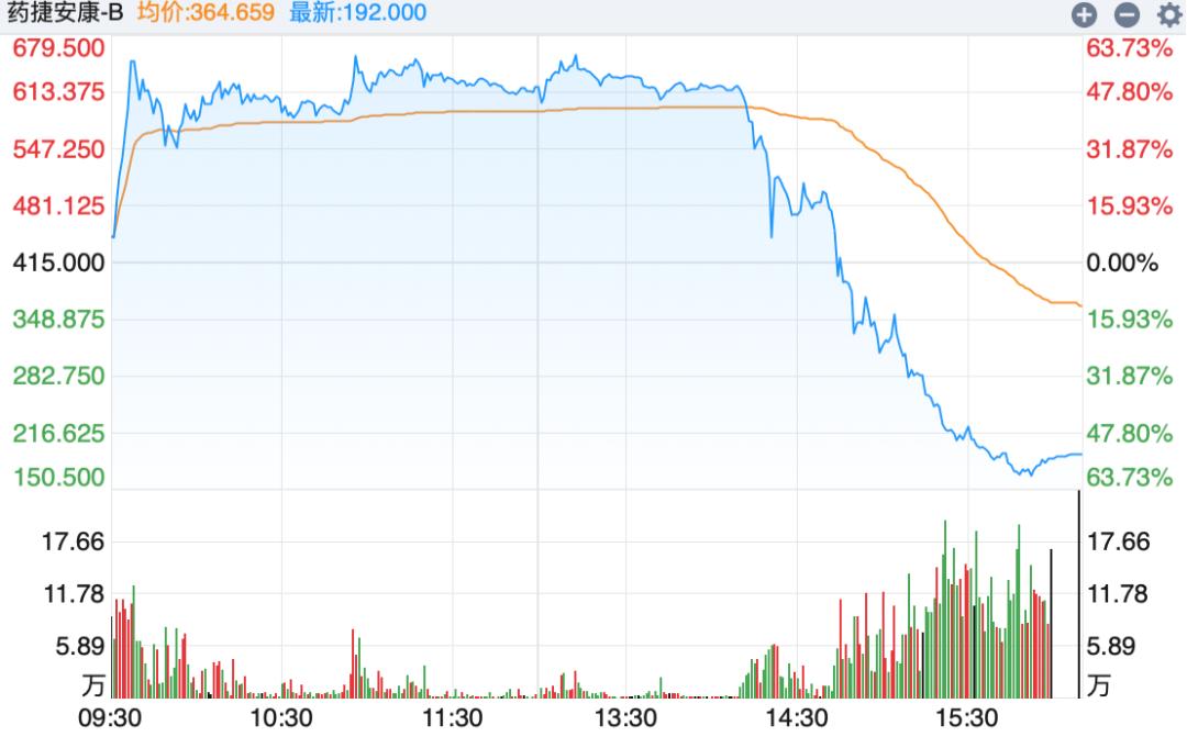 刺激!药捷安康这只50倍“妖股”有点绷不住了,股价从680直接跳水到192。