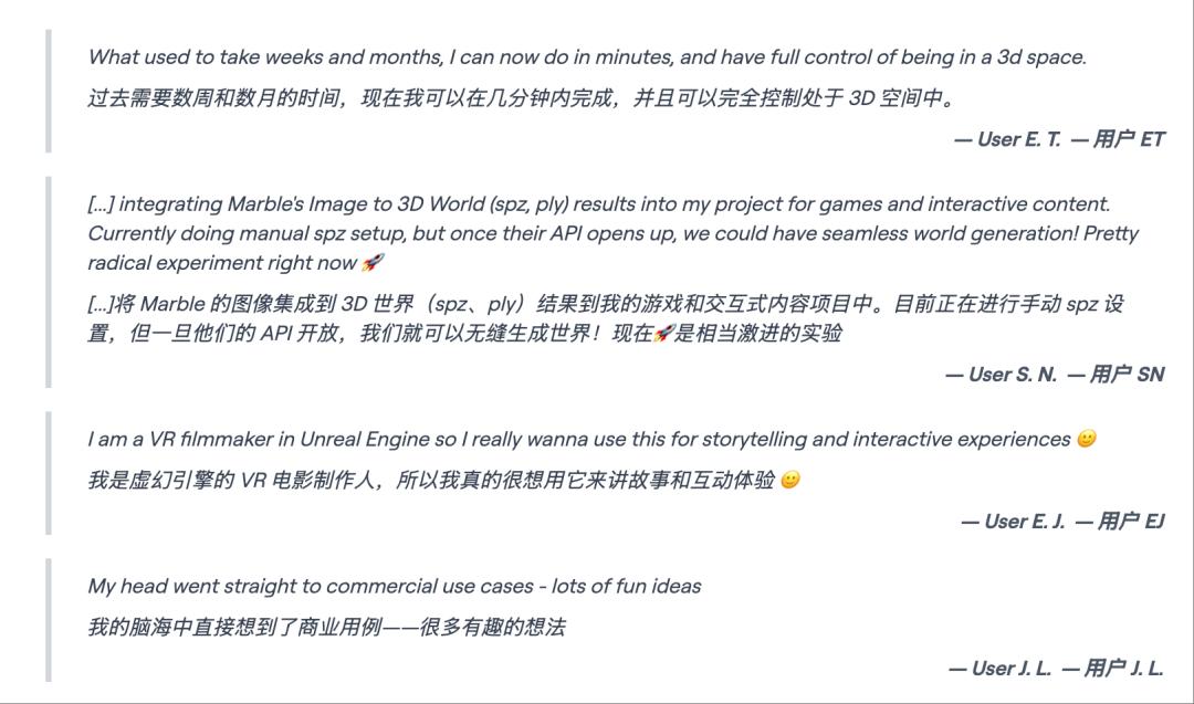 World Labs的博客中,摘取了不少早期用户的体验感受: