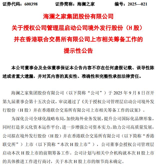 9月8日,A股上市公司海澜之家公告称,拟在境外发行股份(H股)并在香港联交所上市。看到消费股泡泡玛特、蜜雪冰城和老铺黄金在港股市场受欢迎,而A股热衷炒科技,国民男装海澜之家也跟上赴港上市潮,想进入“A+H”俱乐部。