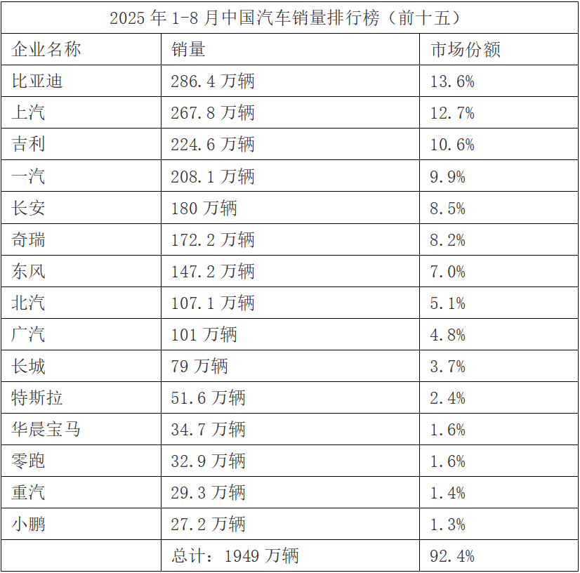 ①2025年中国车企最新销量目标完成率分化.环球网.2025-09-12
