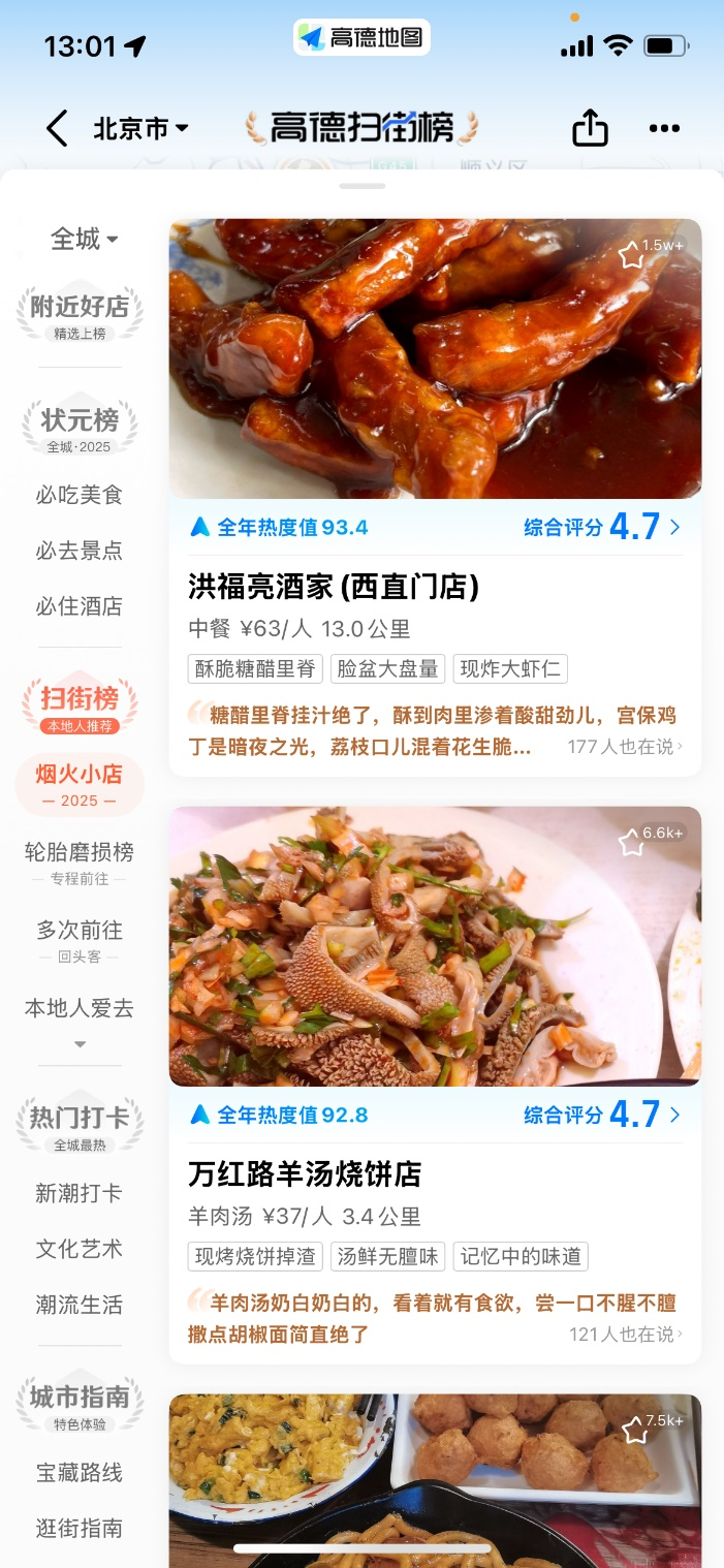 高德扫街榜上线第一周,上榜烟火小店流量增长187%。消费者们正在热烈地通过“烟火小店榜”寻找美食小店。