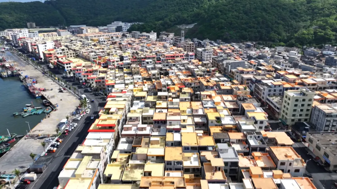 从航拍画面俯瞰,大片房屋屋顶呈现出柠檬黄、橘黄、橙色三种渐变色,宛如一幅色彩斑斓的巨型油画。这些鲜活的色块与碧海蓝天、静静停泊的渔船相互映衬,共同勾勒出一幅壮观的海景图,成为覆盖渔港区域的全新视觉艺术地标。
