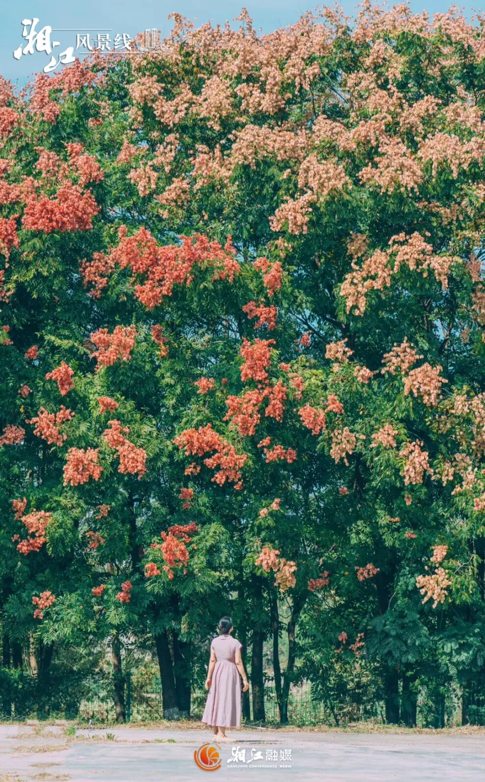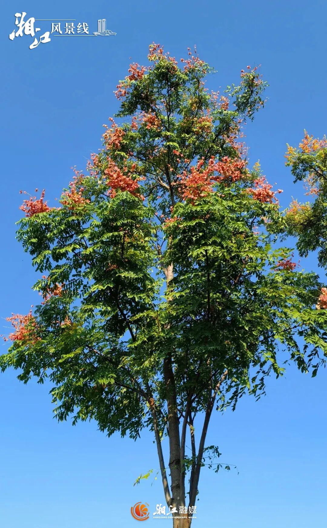 长沙滨江文化园的栾树,以湘江为幕,建筑为衬,演绎着四季流转的视觉诗篇。蒴果渐染绯红,似万千灯笼悬于文化长廊之侧。