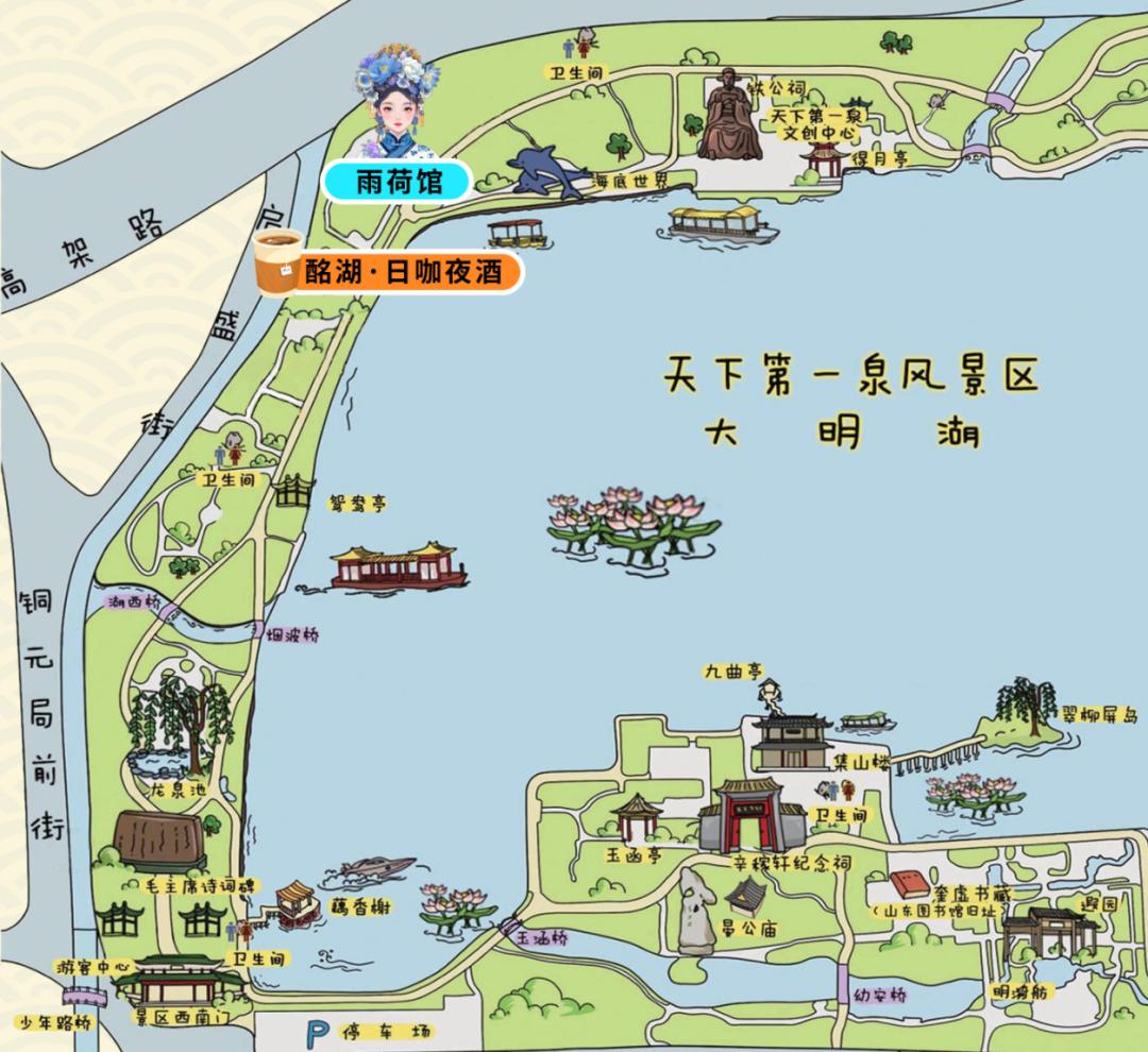 它坐落在大明湖西岸,就在雨荷馆的隔壁,距离湖边仅10米,拥有绝佳的观景位置。