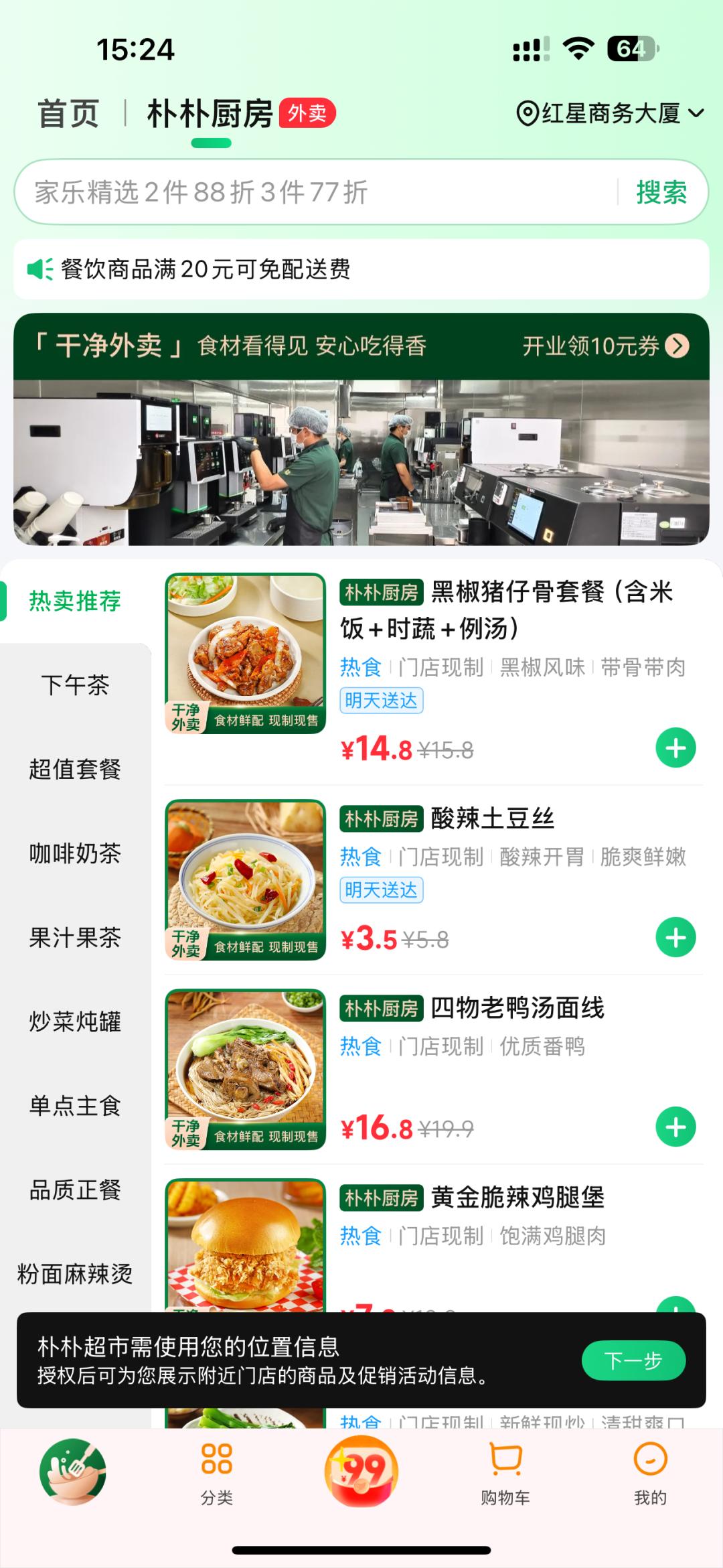 朴朴超市低调上线自营外卖“朴朴厨房”