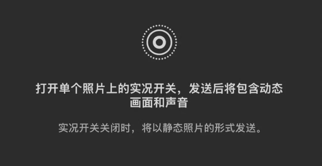 用户发送图片时,可打开单张照片上的实况开关,发送后照片将包含动态画面和声音。需要注意的是,选择图片时,图片的实况状态默认关闭,用户发送照片前需点击进入大图预览页面,手动开启单个照片的实况开关,这样就能真实地传递火锅的热气、孩子的笑声。