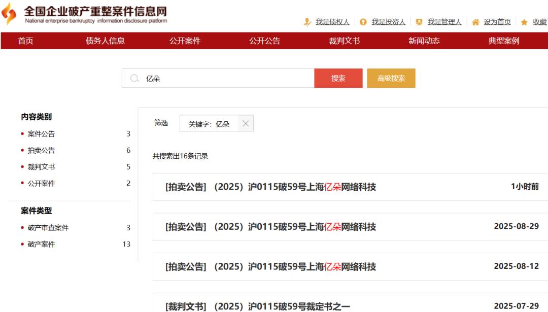 近日,聚美丽从全国企业破产重整案件信息网了解到,美妆TP服务商上海亿朵网络科技有限公司(简称“亿朵电商”)已进入破产清算程序,名下资产公开拍卖。