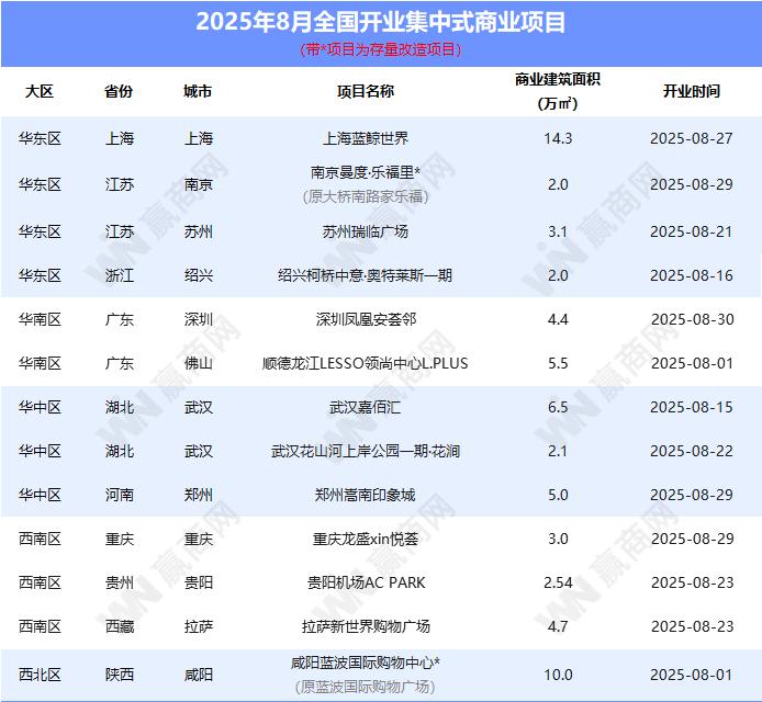 八月全国新开商业项目亮点多,下沉市场竞争激烈