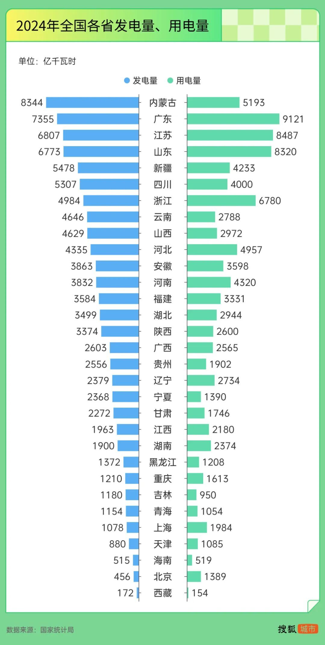 2024年,广东全年用电量达到9121亿度,这与日本一个国家的用电量基本相当。