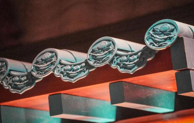 由于项目定位为华东首家沉浸式大明文化空间,在装饰阶段更强调金陵古风的呈现。在二层、五层,能看到工人们正在安装屋檐、立柱及阁楼顶部,其色调以红色为主,辅以青绿基调檐口。项目负责人介绍,室内装饰复刻明代建筑模样,飞檐翘角,斗拱结构,彰显传统韵味。因是现代建筑室内改造,从消防角度不能用木质材料,均使用仿木铝制金属材料。这些充满古风的构件在多地工厂加工后,运至现场按图安装,用现代工艺拼出古典建筑风景。
