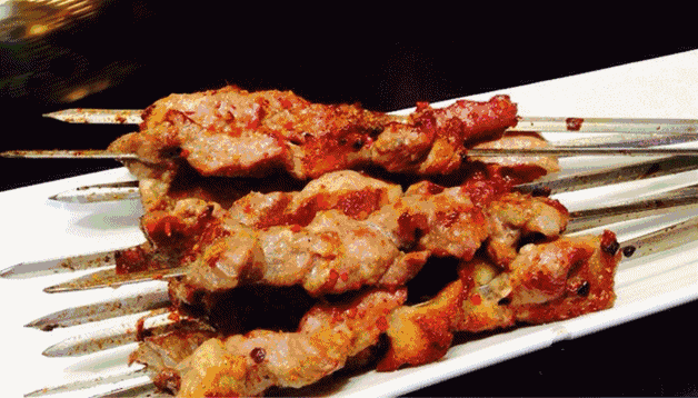 红柳烤肉用红柳枝条串起大块羊肉,炭火烤制后肉质紧致有嚼劲,还带着红柳特有的木香。