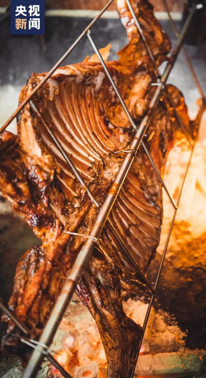 烤全羊外表金黄油亮,外皮焦脆,内里绵软鲜嫩,是当地人款待贵客的最高礼遇。