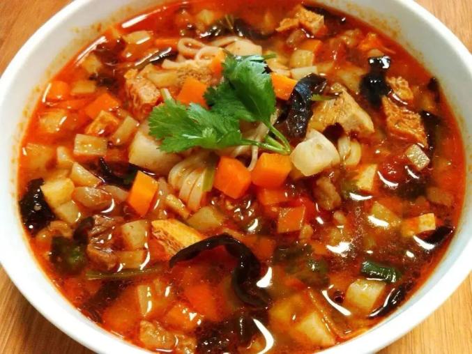 羊肉合汁,“合”指多种食材的和合,“汁”指羊肉汤。它以羊肉为主料,又将丸子、夹沙、木耳、粉条、豆腐等烩制在一起,色、香、味俱全,汤鲜肉嫩,味美可口,营养丰富。