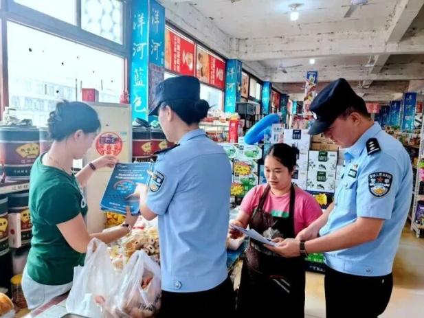 9月16日,大蒲河海防派出所民警在辖区沿街商铺开展网络安全宣传周宣传活动。(通讯员 王星博 摄)