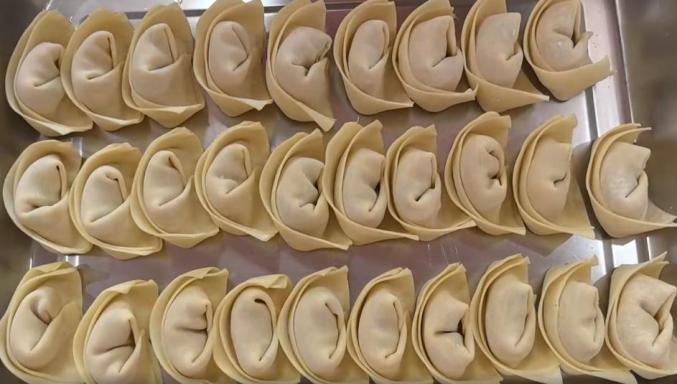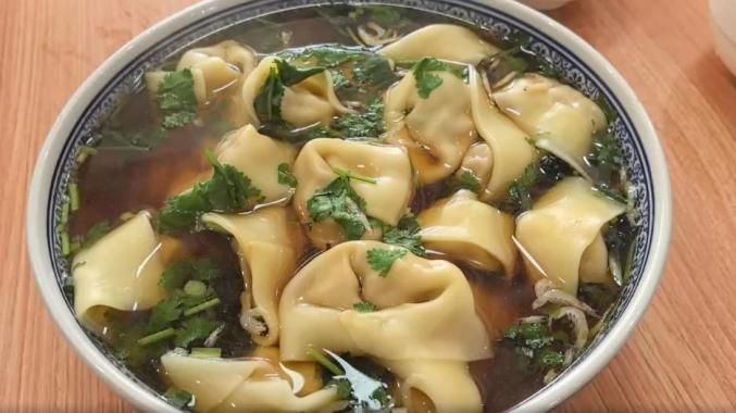 馅料准备好后,阿姨们迅速开始包馄饨。一折一捏,一只只像元宝的馄饨就包好了。水开后下馄饨,全部浮起捞出。汤底也很有讲究,除了常见的香菜和葱花,还加了紫菜、虾米提鲜。一口下去,肉质Q弹,鲜香十足。居民范连芳说:“这个馄饨,皮有嚼劲,里面的馅更鲜美,我从没吃过这么好吃的馄饨。”