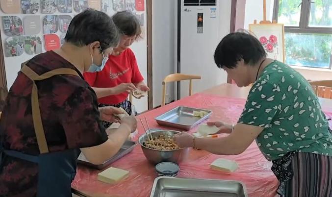走进御景龙庭的学习坊,欢声笑语不断。姐妹团的阿姨们准备好包馄饨的食材,有新鲜的猪肉、活虾,还有玉米、葱花等。洗净切好后,开始拌馅。胡月英说,馄饨好吃,关键在馅料。“一定要放点蛋清,这样才有弹性,口感更好。”