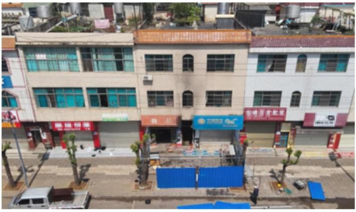 调查报告显示,起火建筑是一栋3层的钢混结构建筑,于2001年建成并投入使用。建筑东侧一层为临街铺面,其中,由南往北第一间铺面是“富源县营上镇x艳商店”(经营者为尹某艳,经营范围包括服装、鞋子零售),该商店又分为东西两间,东侧是临街门店,西侧则是厨房;第二间铺面是“网宇通讯”(经营者为尤某伟,经营范围为手机维修、零售)。