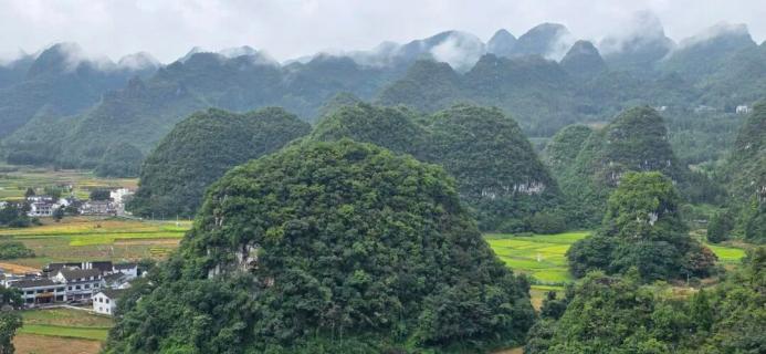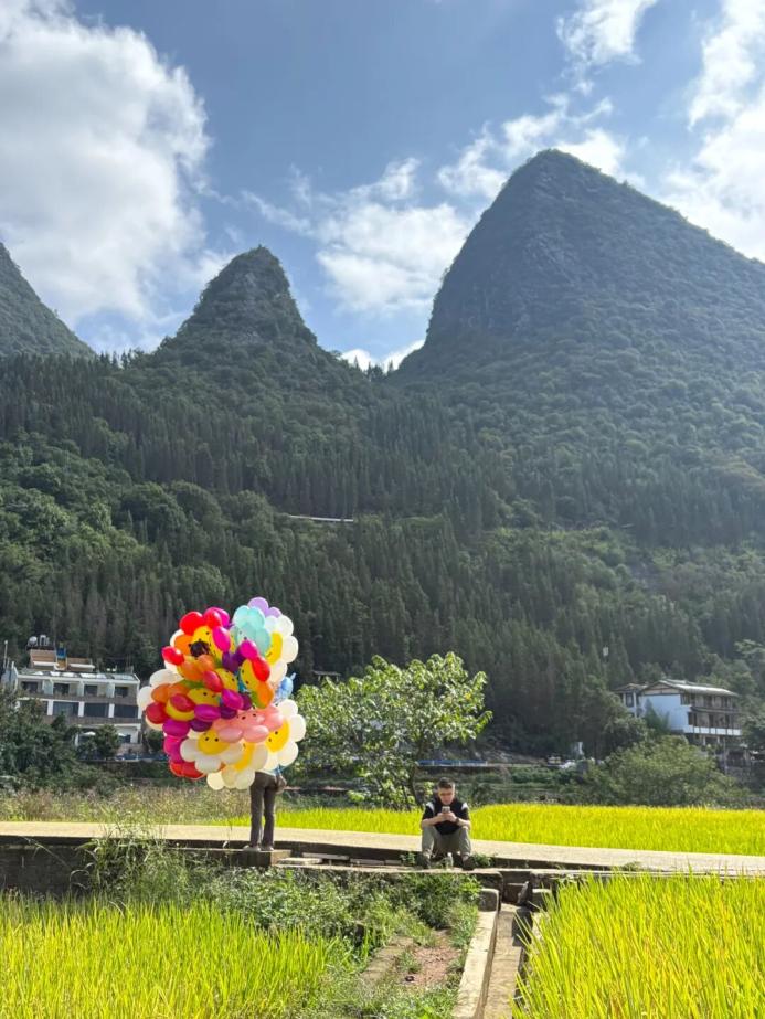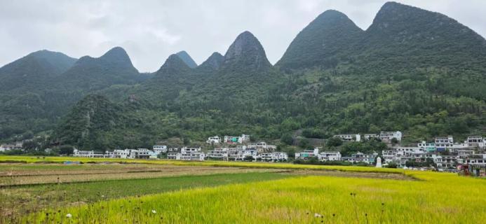 翠绿色的山峰从田地间拔地而起,像玉笋,像巨人,守护着土地。照片难以展现其美,身临其境,看风拂稻田、听村寨犬吠,才能感受“峰成林,田成画”的壮阔与温柔。