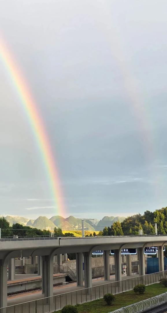 离开兴义时,骤雨后彩虹挂在车站上方,夕阳落在远处峰峦间。这座被山水滋养的城市,将随着高铁到来,在时光中绣出更绚烂的篇章。