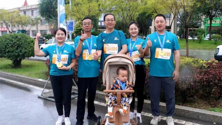 上午9点左右,参赛选手高弘和妻子、亲家公、儿子儿媳以及刚满一岁的孙子高瑜易,携手完成了5公里亲子跑的挑战。完赛后,高弘虽浑身湿透,脸上却满是喜悦的笑容,他说:“我特别开心,一点儿都不觉得累,仿佛年轻了20岁!”雨水顺着他的脸颊滑落,却冲不掉他的自豪与激动。