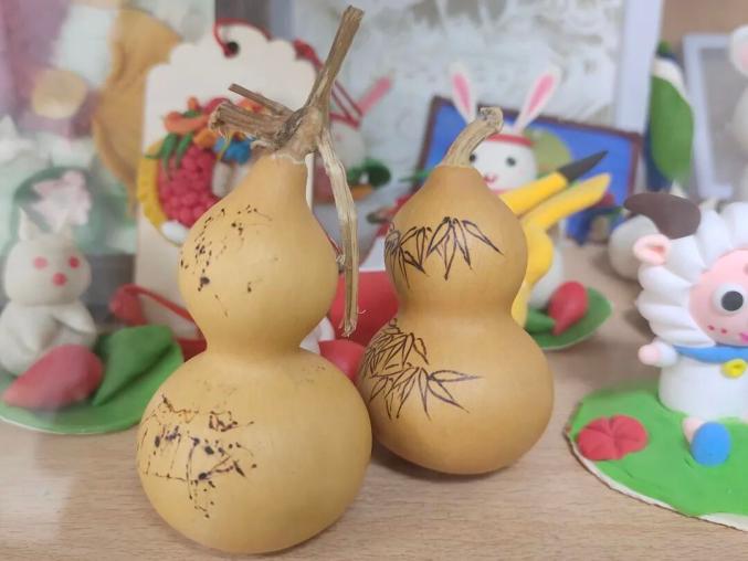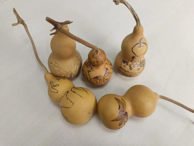45岁的曾晓燕曾是设计师,孩子出生后成了全职妈妈。尽管离开设计行业多年,但她的美术功底还在。她认为,葫芦彩绘可以与工艺美术结合,成为一种实用艺术。课堂上,她创作了许多新奇作品:有在葫芦上画敦煌九色鹿,掏空做成容器;也有在葫芦通体绘制小花,一只黑白花纹的小鸟破壳而出。