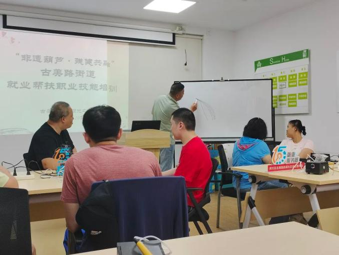 依托“15分钟就业服务圈”社区就业服务站,古美路街道社区事务受理服务中心将非遗葫芦纳入“技能加油站”的培训项目,分别为残障人士与健康人群开设12周、每周一次的公益培训课。从社区授课到作品变现,葫芦成为实现就业的微小一环。