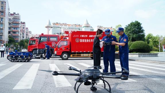 活动现场,湖南队设置了应急救援科技装备展示区,展出了多功能无人机、防化侦察机器人、生命探测仪和智能应急指挥系统等一系列先进救援设备。技术人员不仅现场讲解了装备性能和应用场景,还结合危化品事故特点,实地演示了科技手段在灾情侦测、信息回传和辅助决策中的重要作用,凸显了“智慧应急”在提升救援效能和保障救援安全方面的价值。