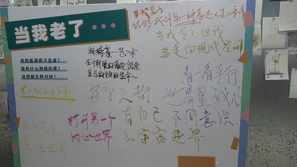 洪阿姨在留言板上写下‘每个人都有自己的宇宙世界’,这是她从画作中领悟出来的,这次是女儿帮她报了名,她表示以后有机会还要多看展览,‘因为世界丰富了,人的灵魂和思想也会有新的内容。’