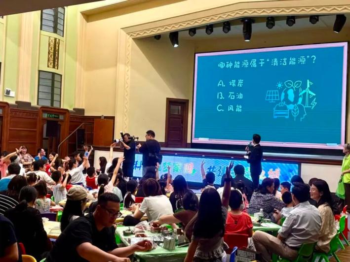 随后的绿色科技快问快答和垃圾分类闯关活动将现场气氛推向了高潮。主持人话音刚落,“我知道!我知道!”的呼喊声此起彼伏,一只只小手迫不及待地高高举起。家长们纷纷举起手机,记录下每一个精彩瞬间。