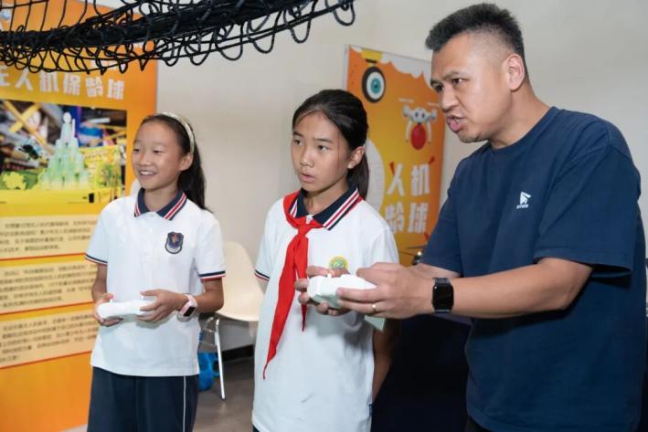 在机甲大师对抗区,孩子们全神贯注地操控着机器人,让其快速移动并进行精准射击;匠心手工坊内,艾草的清香与孩子们的欢声笑语交织在一起,他们正亲手制作植物养生锤和艾草薄荷膏;在无人机保龄球体验区,小选手们聚精会神地操控无人机向前飞行,精准撞击排列整齐的水杯,场面十分热烈。