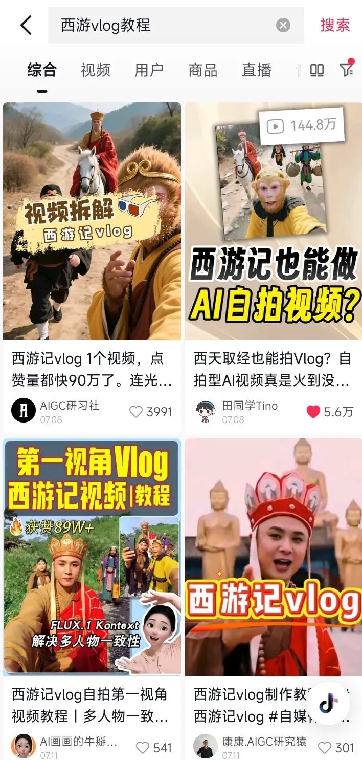 我们欣然消费AI vlog里的“真实”,真人内容的价值受到前所未有的挑战。一切解构都为了流量,这是这个时代内容创作者的紧箍咒。教程被大量生产,我们看似有无限解释自由,但学做西游vlog的人,并非有创作野心,只是想获取AI内容池里的流量,缓解现实生存压力。
