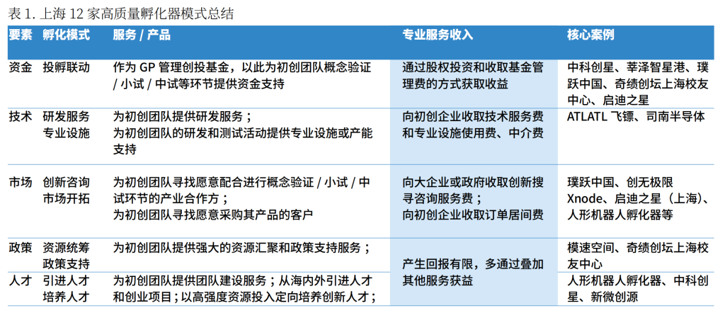 • 政策型孵化器依托政府资源和园区生态,为初创企业提供政策支持和应用场景,并通过与专业孵化品牌合作提升专业服务能力。