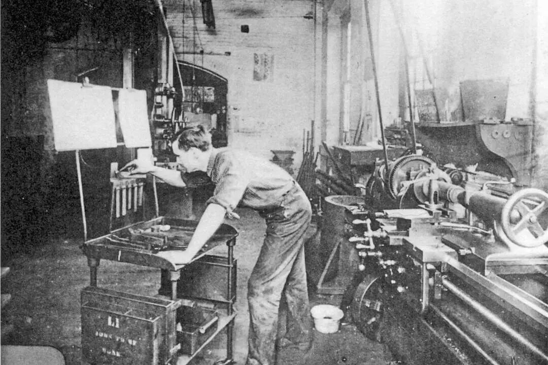 19世纪末的美国工厂,是一个粗犷、蓬勃却又混乱的时代。机器轰鸣,蒸汽弥漫,空气中混合着煤烟、油脂和汗水的气味。工人们身着沾满污垢的粗布衣服,在震耳欲聋的噪音中弯腰、搬运、敲打,每个工人似乎都凭借自身的经验、力气和性情干活。