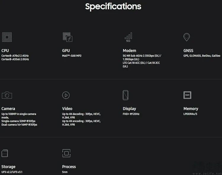 简单来讲,Galaxy F17搭载了三星自研的Exynos 1330。其内部代号为S5E8535,采用三星自家的5nm制程,内置两颗2.4GHz的A78大核以及六颗2.0GHz的A55小核,配备Mali - G68MP2 GPU方案。此外,它还集成了三星自己的5G基带和最高1.08亿像素的ISP。