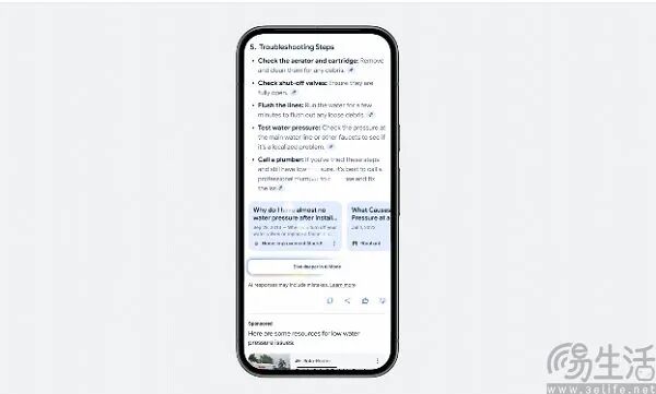 谷歌表示,此举是为了在更好满足用户搜索需求的同时,为广告主提供更精准的营销机会,而且这种广告展示形式是对用户实际需求的优化,更贴合现代用户的搜索习惯。他们还举例称,当搜索 “我该如何解决水压低的问题”时 ,Gemini会给出答案,同时用户也能看到与该问题相关的广告,比如提供水管工服务或家居维修的企业。